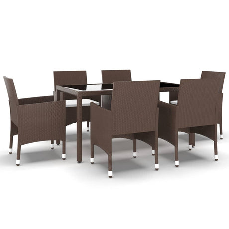 7 Piece Garden Dining Set Poly Rattan and Tempered Glass Brown