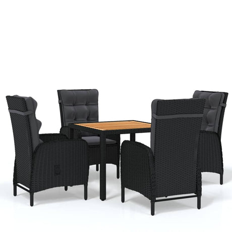 5 Piece Outdoor Dining Set with Cushions Poly Rattan Black