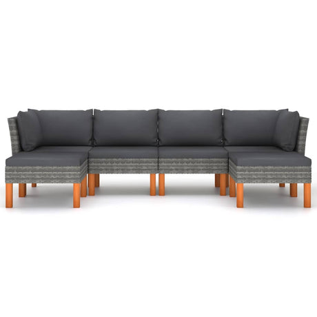 6 Piece Garden Lounge Set with Cushions Poly Rattan Grey