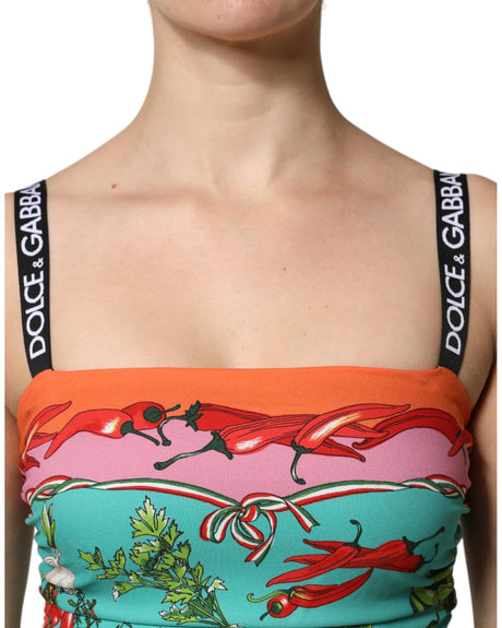 Dolce & Gabbana Women's Multicolor Printed Silk Sleeveless Midi Dress - 46 IT