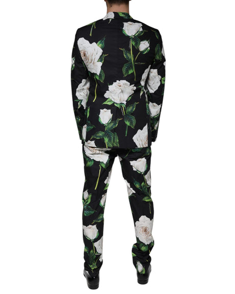 Dolce & Gabbana Men's Black Rose Cotton Formal 2 Piece Suit - 50 IT