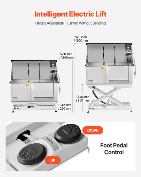 VEVOR 127 cm Electric Dog Grooming Bath Tub Stainless Steel w Water Filter