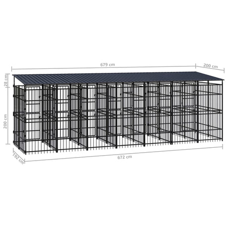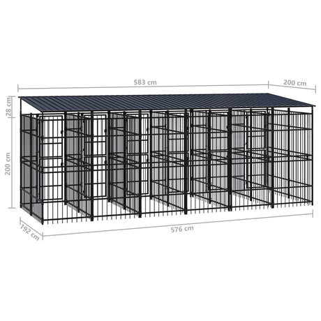 Outdoor Dog Kennel with Roof Steel 11.06 m²