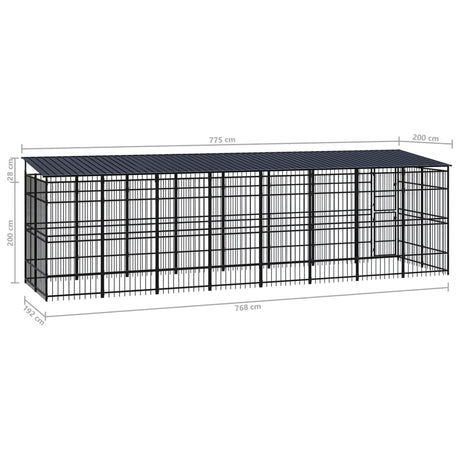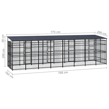 Outdoor Dog Kennel with Roof Steel 14.75 m²