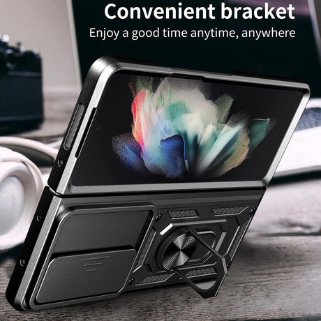 For Samsung Galaxy Z Fold4 5G Tpu Pc Case With Sliding Camera Cover - Black