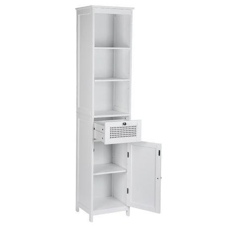 Artiss Bathroom Cabinet Storage 161cm White Rattan Tallboy Toilet Cupboard