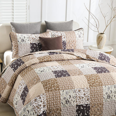 Gleaming rust brown colo patchwork 3 Pc Bedspread & Pillow Cover Set