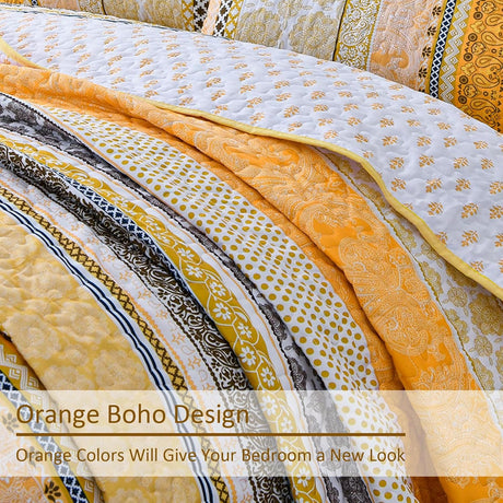 Rusty Boho floral Chic 3 Pc Bedspread & Pillow Cover Set