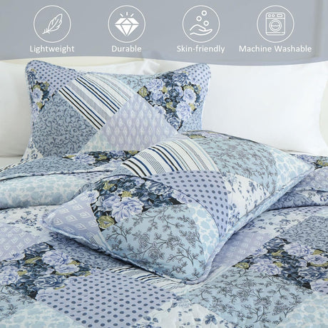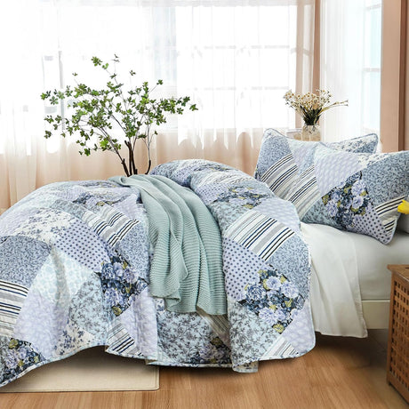 Radiant Summer Breeze patchwork 3 Pc Bedspread & Pillow Cover Set