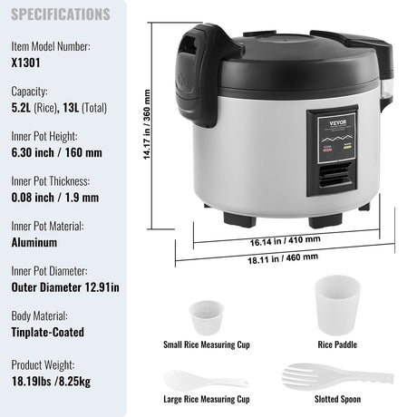 VEVOR Commercial Rice Cooker 60-Cup Non-Stick Pot 13L 12H Keep Warm Restaurant
