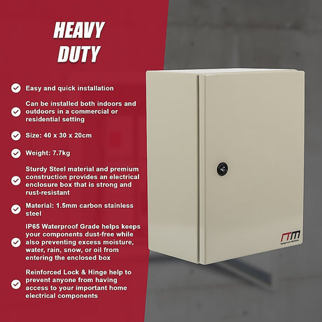 Carbon Steel Electrical Enclosure Box IP65 Wall Mount 400 x 300 x 200 mm
