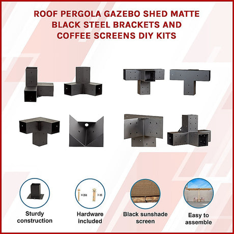 Roof Pergola Gazebo Shed Matte Black Steel Brackets and Coffee Screen DIY Kits