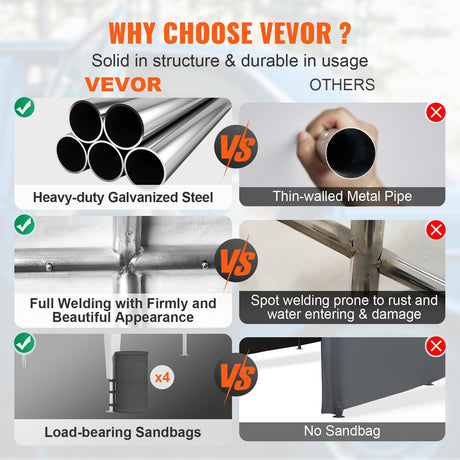 VEVOR Carport Car Canopy Garage Shelter Tent 10x20ft with 8 Poles for Auto Boats