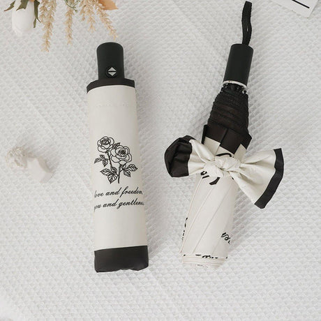 Vintage Rose UV Protection Automatic Manual Tri-fold Sun Rain Umbrella Sunshade - Manual