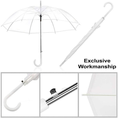 Clear Dome Umbrella Wedding Party Transparent Parasol Handle Waterproof Rain - Black