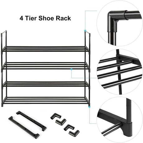Multi-Functional 4-Tier Metal Shoe Rack for Up to 20 Pairs – Space-Saving Organizer in Black (80cm)