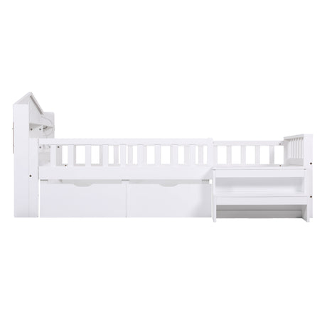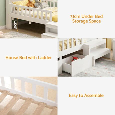 2 x Wooden Bed Frame Storage Trundle Drawers-White