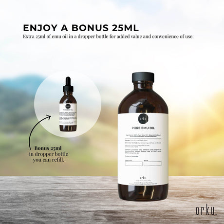 Orku 250ml Pure Emu Oil + Bonus 25ml Bottle - Australian Dromaius Novaehollandiae