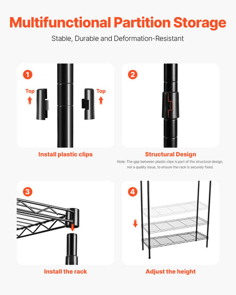 VEVOR Over Washer and Dryer Storage Shelf Two Row 4 Tiers Washer Rack Black