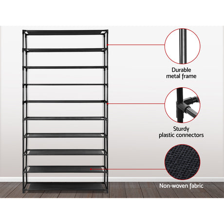 Artiss 10-Tier Stackable Shoe Rack - Black Dunn Storage Solution