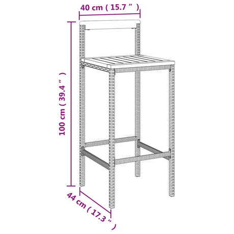 Bar Stools 2 pcs Grey Poly Rattan and Solid Wood Acacia