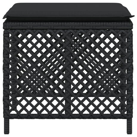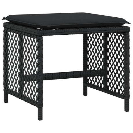 Garden Stools with Cushions 4 pcs Black Poly Rattan