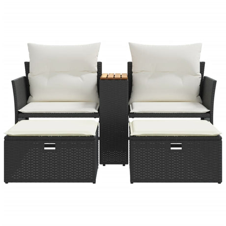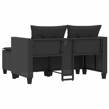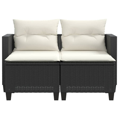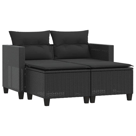 Garden Sofa 2-Seater with Stools Black Poly Rattan