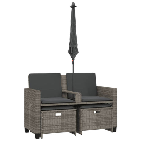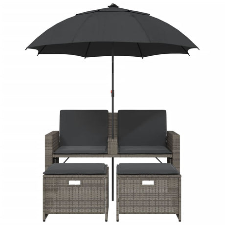 Garden Sofa 2-Seater with Parasol and Stools Grey Poly Rattan