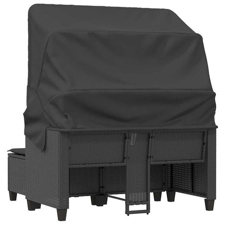 Garden Sofa 2-Seater with Canopy and Stools Black Poly Rattan