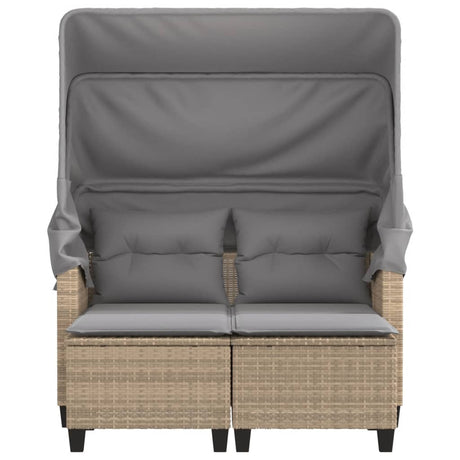Garden Sofa 2-Seater with Canopy and Stools Beige Poly Rattan