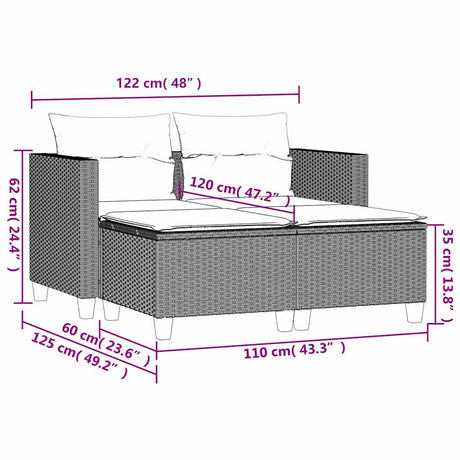 Garden Sofa 2-Seater with Stools Light Grey Poly Rattan