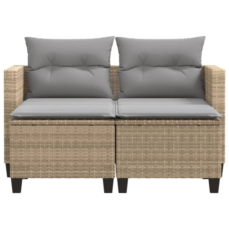 Garden Sofa 2-Seater with Stools Beige Poly Rattan