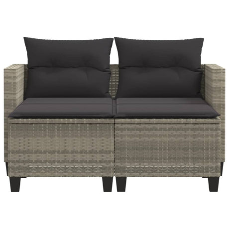 Garden Sofa 2-Seater with Stools Grey Poly Rattan