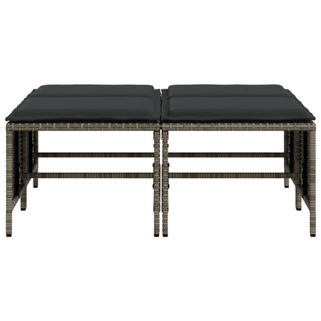 Garden Stools with Cushions 4 pcs Grey Poly Rattan