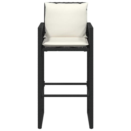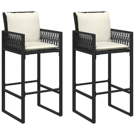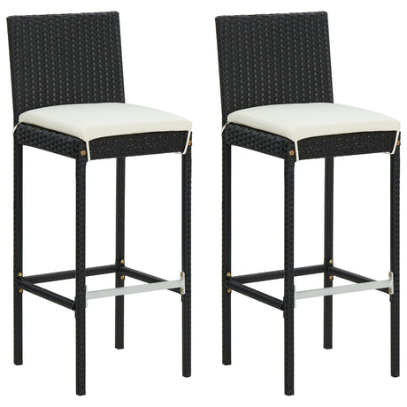 Garden Bar Stools with Cushions 2 pcs Black Poly Rattan