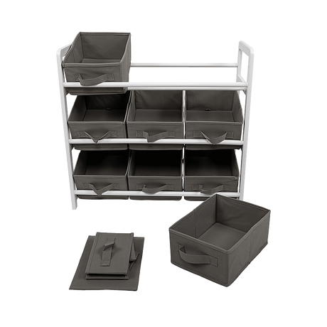SORTI 27x28x27 CM Grey 8-Pack Foldable Storage Cubes - Fabric Bookcase Organizers for Toys and More