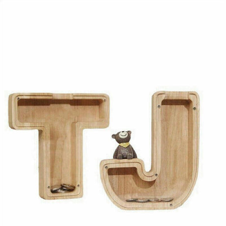Wooden Piggy Bank Funny Letter or Guitar Coin Saving Money Box A–Z Gift Idea - J