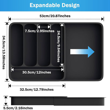 Expandable Cutlery Drawer Organizer Adjustable 6 Slot Kitchen Utensil Tray - Black