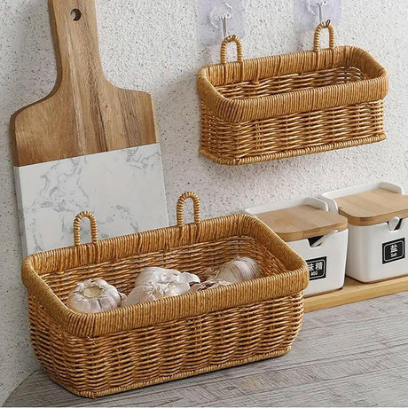 Wall-Mounted Rattan Style Hanging Storage Basket Kitchen Vegetable Fruit Basket - Large