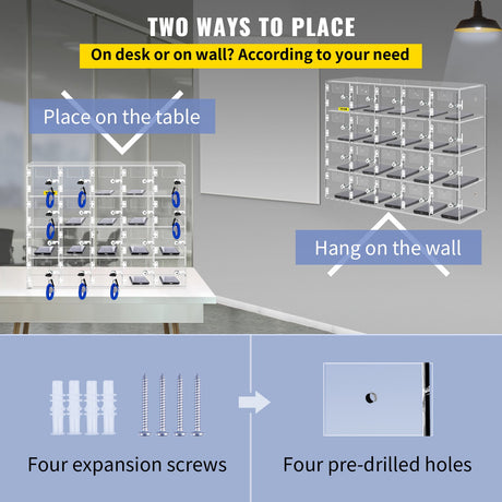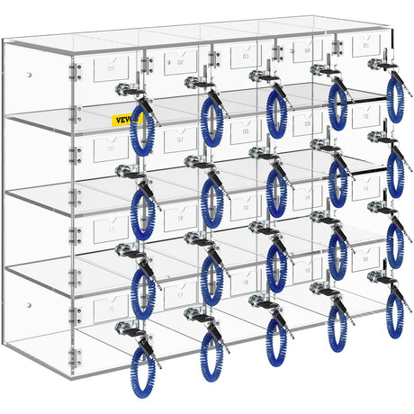 VEVOR Acrylic Cell Phone Locker Box Storage Cabinet Pocket w/Keys 20 Slots Clear