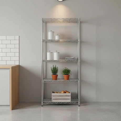 5 Tier Silver Metal Storage Rack Shelving Wire Shelf