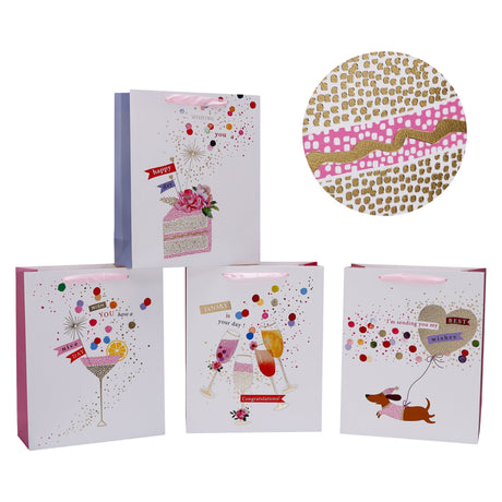 bulk 24 Large Confetti Luxe Gift Bag 4 Asst 26x32cm