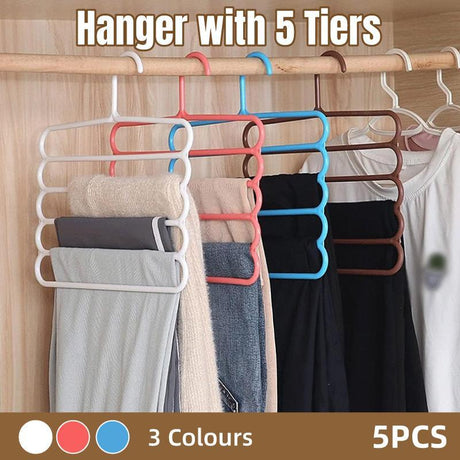 5pcs 5 Tier Trouser Rack Multifunctional Hanging Wardrobe Scarf Tie Hanger Set - Blue