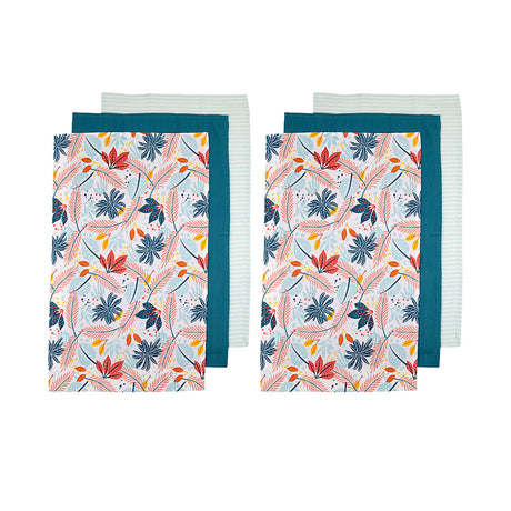 Ladelle Set of 6 Zest Bright Cotton Kitchen Tea Towels 50 x 70 cm Leaves