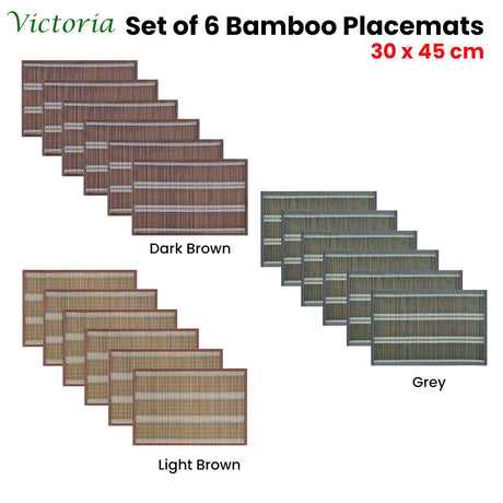 Set of 6 Victoria Bamboo Table Placemats 30 x 45cm Grey/Silver