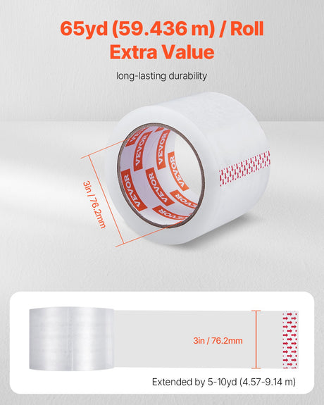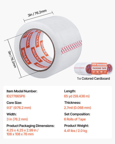 VEVOR Clear Packing Tape 6 Rolls 65 Yards Heavy Duty Clear Packing Tapes 2.7 Mil