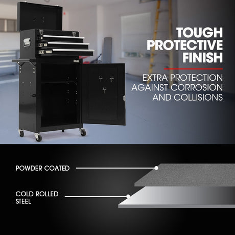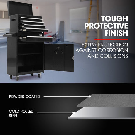 BULLET Pro 5 Drawer Tool Box Cabinet Chest Storage, with 1-Door Toolbox Garage Organiser Set, Black