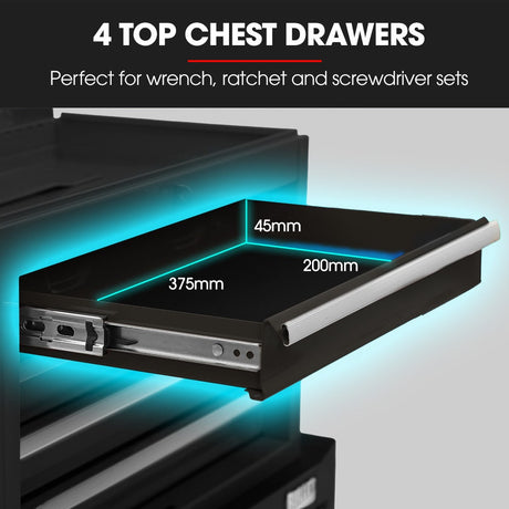 Bullet Pro 9 Drawer Tool Box Chest, Organiser Mechanic Garage Storage Toolbox Set - Black