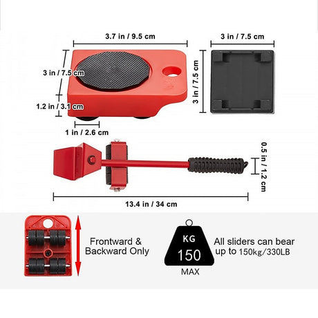 4 X All-purpose Dolly Metal Heavy Duty Furniture Mover Slider Set