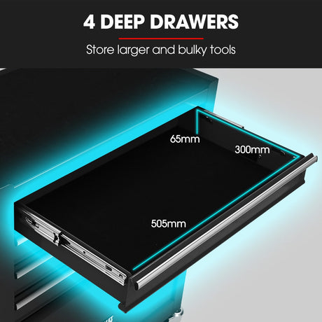 Bullet Pro 9 Drawer Tool Box Chest, Organiser Mechanic Garage Storage Toolbox Set - Black
